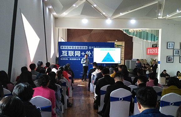 培训会上来自瑞诺国际的非著名讲师张桥智为大家分享了“互联网+外贸”的新形势。他幽默诙谐的授课风格,迎来了在座企业代表的阵阵掌声。他把生涩难懂的互联网知识,通过加工提炼,演绎成大家能听懂的话语。